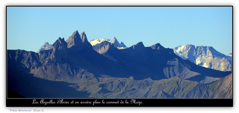 Panorama sur les Aiguilles d'Arves, le sommet de la Meije et le Glacier de Saint-Sorlin.