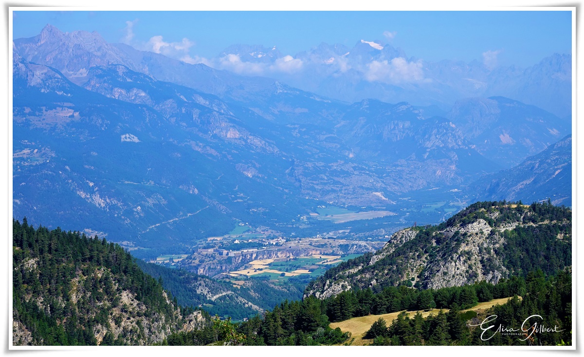 En conte-bas, le fort de Mont-Dauphin et Guillestre.