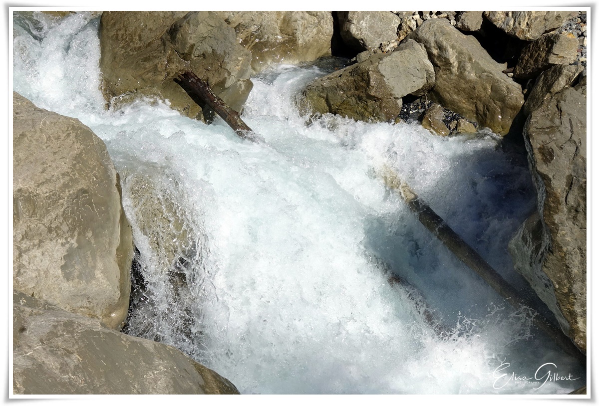 Le torrent s'est frayé un chemin à travers des couches verticales très épaisses.