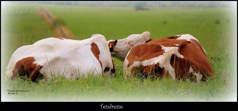 Nous avons remarqué aussi, qu'elles étaient très attirées par nos chiennes. ...... et j'en suis arrivée à penser qu'elles étaient en manque de leurs veaux (car dès que le petit est né il est automatiquement retiré et est élevé au biberon en crèche) ..... Là aussi, j'en ai parlé avec l'agriculteur qui a fait des yeux tout ronds